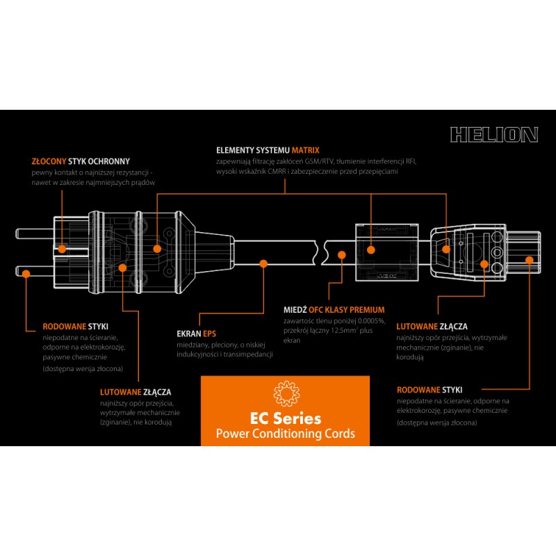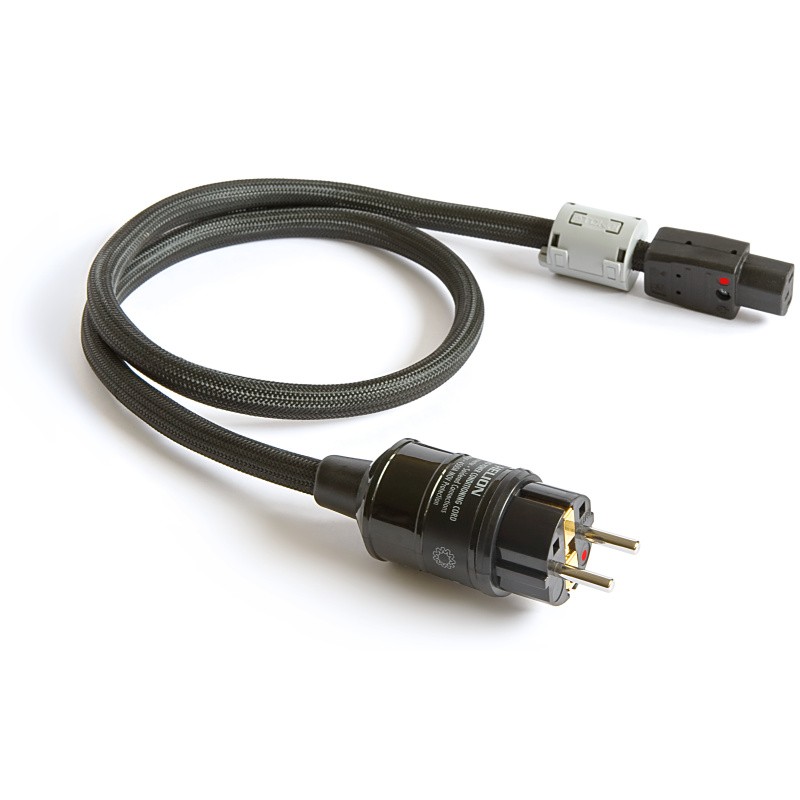 Złocony i rodowany przewód zasilający kategorii Power Conditioning Cord - z dyskretnymi elementami filtrującymi i przeciwprzepięciowymi.